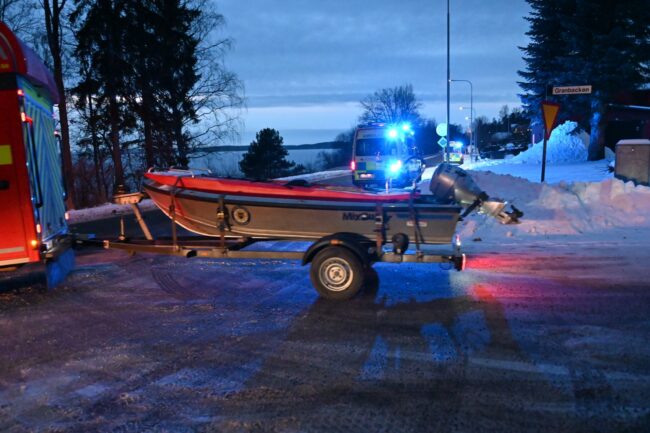 Ambulans samt räddningstjänst med dykare larmades ikväll till Glan utanför Svärtinge där en person gått genom isen.